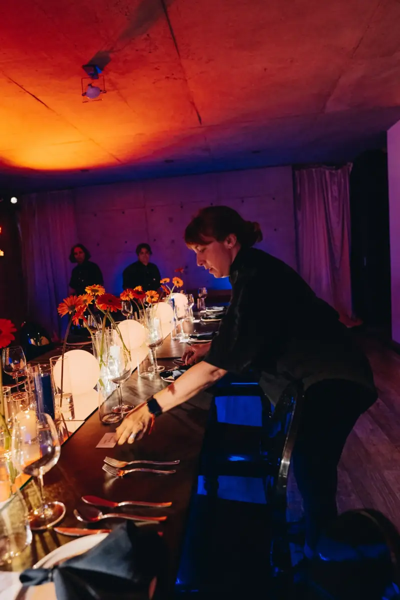 Junto a Levadura, ambientamos una cena exclusiva diseñada para acompañar y complementar una experiencia gastronómica de alto nivel. Apostamos a una puesta en escena que combinó tendencia e innovación, integrando mobiliario sofisticado, iluminación LED y detalles florales que aportaron color y frescura.