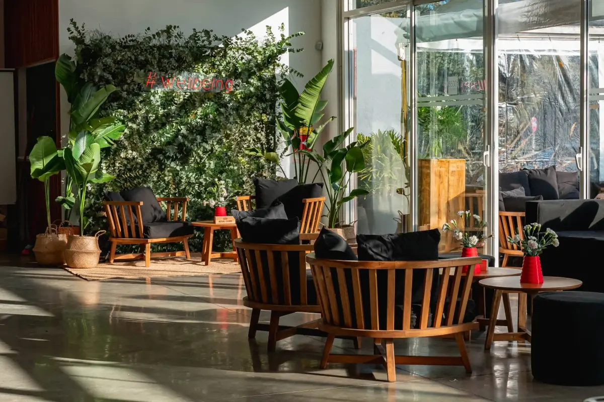 Junto a In Motion, diseñamos un espacio que invitara al encuentro y la conversación en un entorno relajado.