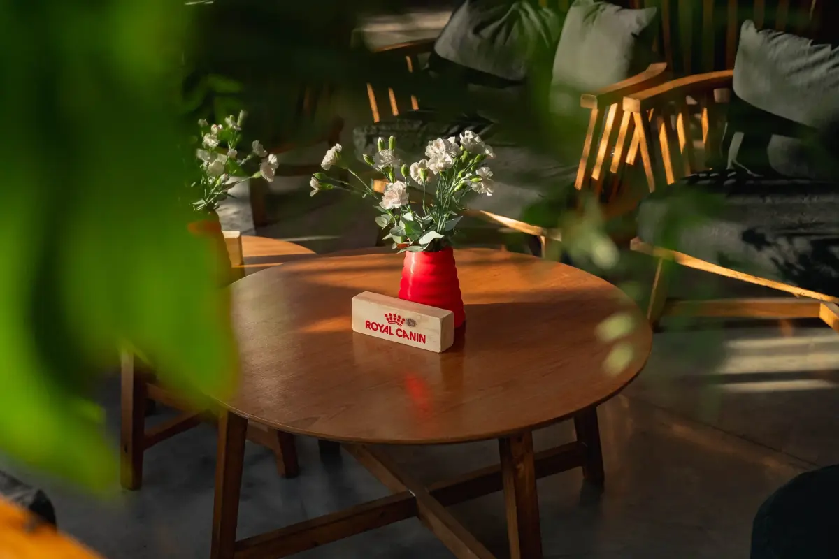El rojo, sello característico de la marca, se hizo presente en detalles clave como almohadones y floreros impresos en 3D, diseñados especialmente para este evento, mientras que tótems con arreglos XL de flores en el perímetro terminaron de dar identidad al espacio